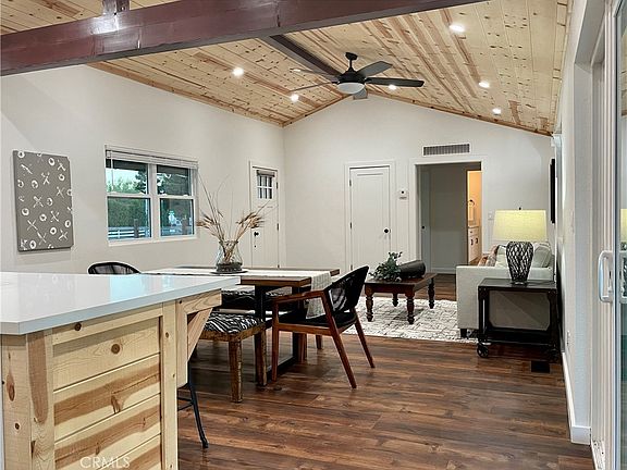 As you drive up you will fall in love with the inviting fresh exterior façade as well as the newly installed front yard fencing and landscaping. Inside you will be greeted by the open floor plan and views to the enormous backyard with a covered patio just right for relaxing and enjoying life! The warm and inviting living room opens to the kitchen with new cabinets w/soft close doors and drawers, quartz countertops and a huge kitchen island perfect for entertaining and casual dining. The natural pine planked ceiling is one of the many custom and unique designs found through out the house. The Master bedroom has its own entrance and is spacious enough for a sitting/ living area, office area or nursery. The master bathroom has 2 sinks and custom quartz and tile work in the shower. You will LOVE, LOVE, LOVE the absolutely huge walk-in closet/dressing room! This master suite would be perfect for long term visitors or family members that need their own space. Don't miss this rare opportunity with so many possibilities!