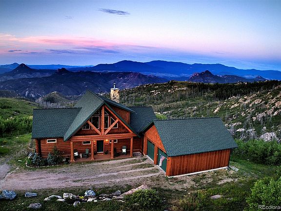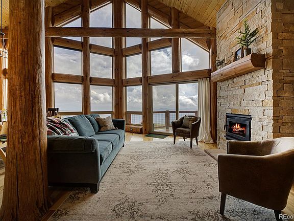 This is the Mountain home that you have been waiting for, a majestic log home with a vaulted wall of windows to soak in the amazing iconic views of snowcapped mountains!! A custom build with main level living of exceptional quality. You will find a large great room with a cozy fireplace, hickory floors throughout and quick access out to a composite deck to enjoy views and wildlife. Step into the kitchen that boasts Jenn Air SS appliances, custom maple cabinets, large island and copper sink. The primary suite includes an ensuite 4-piece bath, walk in closet and a private deck with amazing views of Pikes Peak. Another bedroom, full bath, dining room and large laundry/mudroom round out the main level living. Convenient zero entry access to the oversized garage reveals tongue and groove walls and two 220/240 outlets for tools or charging your vehicle. Upstairs is a spacious loft that can be used as an office, exercise room, art studio or whatever your heart desires. Downstairs opens up to a huge walk out family room, two additional large bedrooms with ensuite full baths and walk in closets. Outside you will discover multiple spaces to sit and relax while your dogs or children play in the fenced yard. A short walk over to a fenced garden is sure to provide produce for your family – not deer! Additional features include Pella windows throughout, buried 1000-gal propane tank, 4.4-kilowatt Tesla Solar system with battery backup, electricity brought to house underground, tankless hot water heater, lots of extra electrical outlets throughout the house and no HOA. The solar panels have created very low electric bills and the home’s efficiency has only required 1 propane tank fill a year. This is the perfect home for anyone looking for main level living, energy efficiency, and want to enjoy a beautiful, quiet and peaceful setting. The land is gently sloping with multiple areas to build additional outbuildings. Just 20 minutes to Hwy 285 and 30 minutes to C-470 and Kipling.