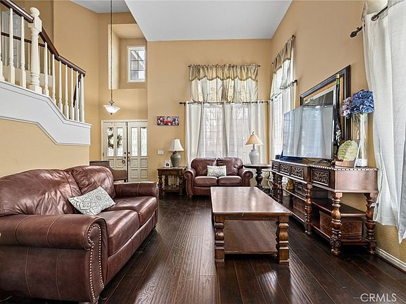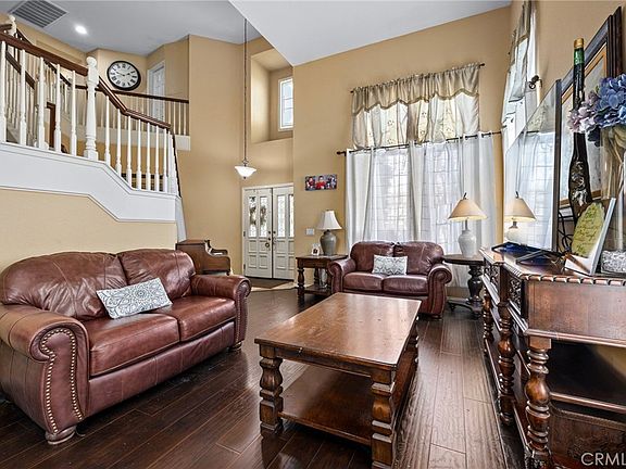 Welcome to this beautiful 5 bedroom home that used to be the model home! This home offers a great sized living room with vaulted ceilings where you can enjoy time. There is a formal dining room where the entire family can share a meal together. The kitchen has plenty of counter space for the chef in the family, with tons of cabinets including pantry space and a gas stove. You have a great view of your oversized backyard with a pool from your kitchen, as well as it is open to wonderful family room. This home not only has 5 bedrooms but they are all great sized bedrooms, you have to see them to believe it. There is a main floor bedroom with a 3/4 bath right outside the door. Recessed lighting throughout the main living areas, custom wallpaper in some bathrooms and bedrooms. Built in speaker system, newer flooring, brand new Lennox dual A/C Units costing over 30k just installed a year ago, all make this home even more amazing. You will love entertaining in this oversized backyard. There is a covered patio, salt system pool and jaccuzi, and tons of yard to still entertain. There are beautiful fruit trees consisting of a lemon trees, an apple tree, guava tree, and roses. The Gazebo stays to offer you even more covered space as well as the 3 sheds for tons of storage above and beyond your 3 car garage. There is an automatic sprinkler system for the front and back, and there is a great potential RV parking. All of this and it is in a wonderful quiet neighborhood with no HOA.