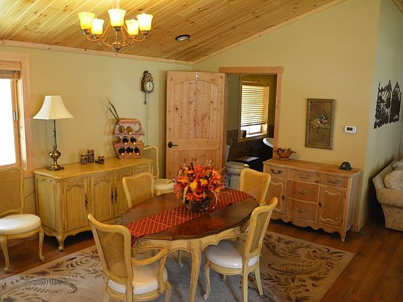 Pine ceiling, doors and trim. Cathedral ceilings. Tiled bathrooms. Oak kitchen and laundry cabinets. Granite countertops. Kitchen island has specialty glass top. New appliances. 500 sq foot pavilion. Septic system and well. Garage has storage loft.