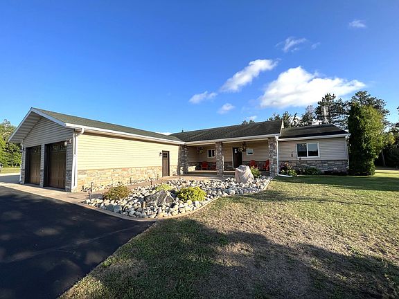 Fall in love with this well-maintained lake home with an impressive park-like setting consisting of over 26 acres. The yard is a private oasis with beautiful landscaping, a private pond with custom buoy display bridge, heated log bunk house to enjoy some quiet time, a shooting range for the outdoor enthusiasts and mature trees for added shade and privacy. Lizotte lake is just shy of 100 acres and is excellent for duck hunting, kayaking, canoeing and appreciate its natural beauty. Desirable one-level-living and open floorplan that offers 3 spacious bedrooms and 2 bathrooms. The home also features Hickory cabinets, a grand center island, central vac., 4-season porch, fireplace, deck, and primary suite with walk-in closet. The attached 24x50 heated tandem garage looks like a showroom and is fits 4 vehicles. Plus, an expansive 80x40 heated and insulated shop has separate well and large door suitable for RV storage. Located just outside Pine River, this home is a must see!
