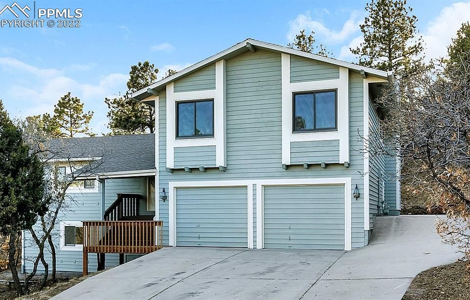 Welcome to this quiet, semi-secluded home in the highly desired west-side Mount Woodmen Estates! Nestled in the foothills amongst pine trees and scrub oak it feels like a retreat. As you enter the home from the covered front deck you will be impressed with the soaring ceilings and huge windows that bring lots of sunlight and frame incredible views. Hardwood floors throughout much of the main level. Brand new paint inside and out, new carpet and stainless steel appliances. The large walk-out basement could be used as an office with private entrance, flex area or second family room. Located near schools and parks, close to shopping, minutes from I-25, with hiking and biking trails minutes away!
