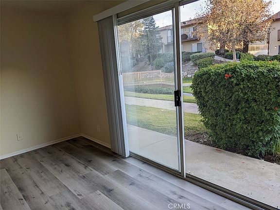Recently updated condo in gated Marbella Community located in Mentone (unincorporated area near Redlands, CA). 1 bed, 1 bath, ground floor unit with 1 car garage and 1 assigned parking, features newer vinyl plank flooring and newer interior paint. The kitchen has a newer granite countertop with bar seating, a newer stainless steel dishwasher, a matching newer stove/cooktop, and a newer microwave. The living room is spacious and offers lots of natural light and a slider to the patio that overlooks the beautiful serene green belt and trees. The bedroom is generously sized, has two closets, and accesses the updated bathroom, and opens to the washer and dryer hookup laundry area. Enjoy community amenities including a swimming pool, spa, clubhouse, and greenbelts, and this community is guard-gated. Conveniently located near schools, shopping, and easy access to Yucaipa, E. Highland, and Redlands. Water and trash are included in the rent. Minimum FICO is 650, no pets, 1 cat may be accepted.