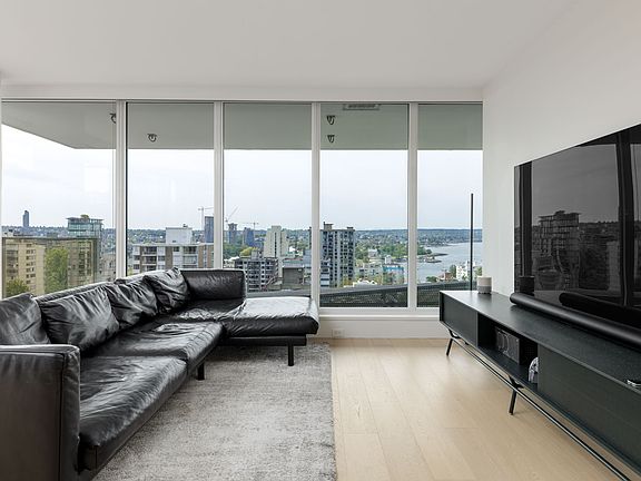This listing is presented by Birds Nest Properties. Mirabel 1365 Davie Street, Vancouver 14th Floor Condo 2 Bedrooms 2.5 Bathrooms 1 Parking Stall No Storage Locker 1329 sq ft Unfurnished Open-Concept A/C High-End Appliances Spacious Balcony Water Views Small pets may be considered. Welcome home to Mirabel, situated in Vancouver's coveted West End neighbourhood. This luxury residence features interiors custom-designed by award-winning Alda Pereira, with wide-plank laminate flooring, over-height ceilings, and expansive floor-to-ceiling windows that bathe the home in natural light. A private balcony offers stunning panoramic water views and a tranquil space to unwind. The gourmet kitchen is a masterclass in form and function, featuring sleek matte-finish Italian cabinetry by Armony Cucine, integrated Wolf and Sub-Zero appliances, Caesarstone countertops, and a large island perfect for culinary pursuits and gatherings. Designed for year-round comfort, the home includes a high-efficiency heating and cooling system, ensuring an elevated living experience in every season. Enjoy the added feature of two TVs and a BBQ, all of which will remain with the home. Located in the heart of Downtown's West End, this neighbourhood offers access to beautiful parks, the seawall, and some of Vancouver's most popular cafes and restaurants. Grab a coffee at Matchstick, and go for a relaxing stroll along the water, watching either the sunrise or the sunset at Sunset Beach Park. Steps from Beach Ave, walk along the seawall to Sunset Beach or English Bay Beach, and enjoy stunning water views while relaxing under the sun. Treat yourself to a delightful dinner at incredible nearby restaurants such as Au Petit Comptoir or Autostrada Osteria. For public transit, bus routes are available along Davie Street. This condo also comes with 1 parking stall. Minimum 1yr lease required. Tenants pay for all utilities. No smoking.