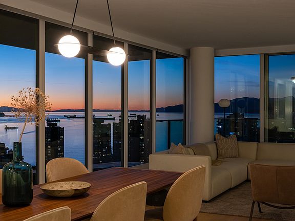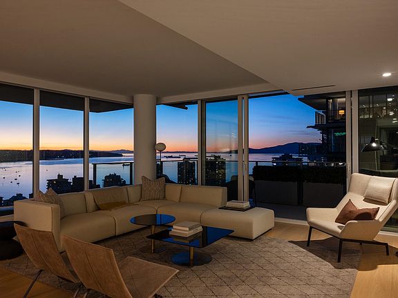 Mirabel is positioned to take advantage of incredible sunsets of English Bay. The sub-penthouse features two oversized balconies, offering 400 sqft of outdoor living space. This expansive home spans a full half floor and offers 3 bedrooms all with ensuite baths and two living areas. North, east and west exposure with 180° views of downtown, the North Shore Mountains, Stanley Park and English Bay. A sophisticated, neutral and timeless palette by Alda Pereira. The kitchen features cabinets by Armony Cucine and is equipped with Wolf, Sub Zero and Bosch appliances. Additional features include: spa bathrooms with Brizzo and Duravit fixtures and two side x side parking. Walking distance to English Bay, Stanley Park. GST included.