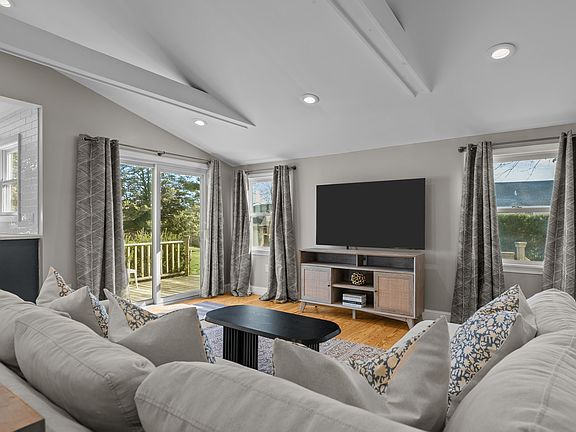 YEARLY RENTAL. AVAILABLE JUNE 1, 2025. Welcome to this charming and meticulously maintained ranch-style home set on a beautiful half-acre lot. Featuring an oversized two-car garage with a convenient drive-thru door to the backyard, plus heat and water hookups, this home is perfect for hobbyists or those who need extra space.Inside, you'll find a newly renovated eat-in kitchen that flows seamlessly into a large family room with cathedral ceilings and sliding doors leading out to a private deck and fenced yard ideal for relaxing or entertaining. Enjoy the warmth of natural light in the bright and sunny living room, and appreciate the hardwood floors throughout. The home offers two generously sized bedrooms, 1.5 updated baths, and the convenience of first-floor laundry. A partially finished basement provides excellent storage and flex space. Outside, a circular driveway and plenty of off-street parking make hosting guests a breeze. ** Exterior Currently Being Painted Tenant to pay utilities (oil, electric, water, wifi/cable). Mower on premises tenant may use.
