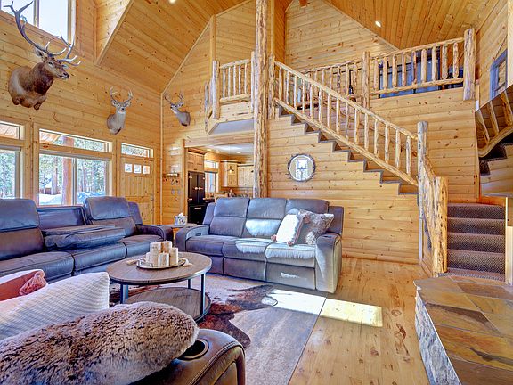 Beautiful log cabin in prestigious Duck Creek Pines. This cabin boosts a large kitchen and living area along with three bedrooms and 2 full bathrooms. The kitchen has been recently renovated and includes matte black appliances with copper accents. The real wood burning fire place will keep you warm and cozy during the cold months. Large picturesque windows frame the living area with beautiful pine trees. The fully covered deck will allow you to enjoy even more of the wonderful mountain air. The private master suite is on the 2nd floor and has a large shower and jetted tub. Two additional bedrooms are located on the main floor. One bedroom has the capacity of sleeping 6 people! The HUGE, detached 1750 SQ FT garage with an RV bay can hold all of your mountain toys. Call to see today!