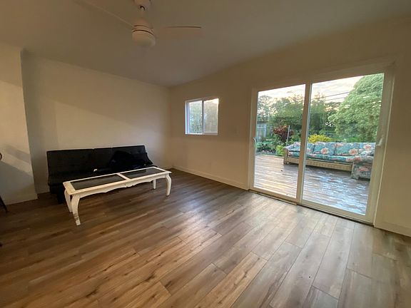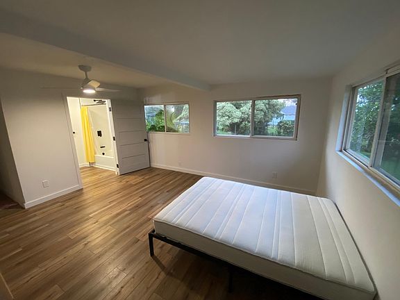 Recently renovated 3 bedroom 1 bathroom standalone house. Very spacious and open floor plan with lots of recent upgrades (new paint, lights, lights, appliances, kitchen and bathroom). 2 car garage, covered lanai in front of house and open lanai in back of house, large fenced in yard with fruit trees and plenty of privacy. The inside of the house has been. Waiting on parts for second bathroom (unit will be a 3bed 2 bath after some time). Pictures show unit before it was finished, unit will be fully furnished. Washer and dryer on site. Pets ok. 6 month lease then converts to month to month (or possible to extend with another lease). Tenant is responsible for electric and wifi. Landlord pays for water, trash, landscaping. Pets negotiable.