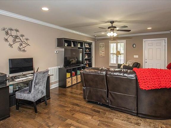 Better than new ranch style home with fenced-in-yard in a quiet county setting in Rock Hill. Four total acres of land! Storage building/workshop has electric, running water with hot water heater! Sellers used the space in the workshop for an extra washer and dryer. Open-floor concept with split bedroom floor plan. No carpet! Beautiful wood floors throughout! Stainless steel appliance! Master Bedroom has large walk-in-closet. Lots of outdoor living with covered front porch and screened-in-porch in the back. House sits on 1 acre with 3 more acres attached in back.