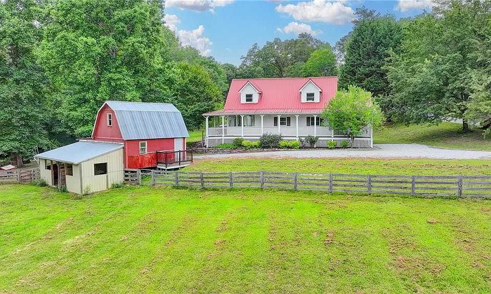 Come see this Charming FARMHOUSE on approx 3.28 acres. Fenced pasture for your animals and a small barn.You will find the inside open with a large sunroom. The primary bedroom sits upstairs featuring a sitting area and full bathroom. Two secondary bedrooms are on the main level with another Full bathroom. The home features a Southern Living-style front porch that invites you into an open foyer featuring a woodburning stove in the livingroom. The hardwood floors flow throught the house while the tile kitchen gives the appearance of a french style. The kitchen window allows you to view the large land while cooking. The laundry room is just off the kitchen with plenty of space. Functionality and location are key to the serenity of this FARMHOUSE.
