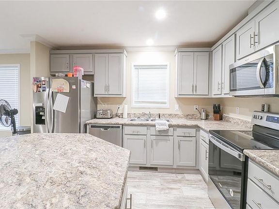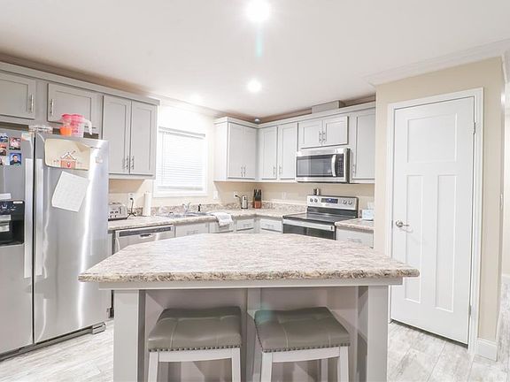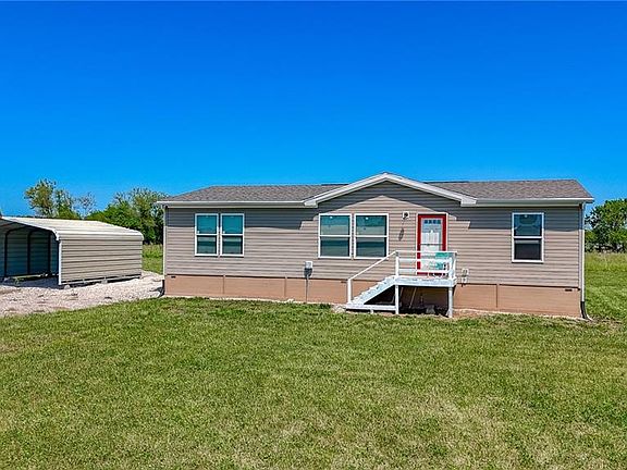 Don't miss this charming customized 3-bedroom, 2-bath manufactured home nestled on a spacious 3.03-acre lot! From the moment you arrive, you'll appreciate the attention to detail and upgrades throughout. This home offers a perfect blend of modern comfort and rural tranquility. Step inside to find upgraded finished walls, custom trim, and premium paint that give the interior a refined, contemporary feel. The kitchen is a showstopper, featuring a larger custom island, brushed stainless appliances, and upgraded flooring—perfect for entertaining or everyday living. The master bathroom is a true retreat, with a huge rain shower, upgraded flooring, and a thoughtful layout designed for relaxation. Outside, enjoy the peaceful surroundings, space for hobbies, and the convenience of a carport for parking. With too many seller upgrades to list, this home is a rare find and move-in ready! Schedule your showing today—this one won’t last!