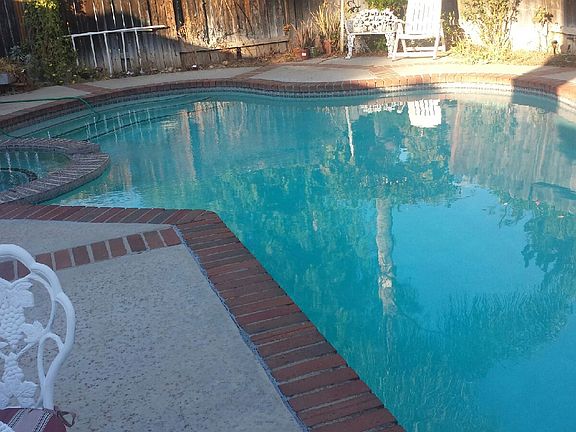 WONDERFUL SINGLE STORY* POOL HOME WITH 4 BEDROOMS 2 BATHS*NEW CARPET*NEW PAINT*NEW LIGHTING FIXTURES*GRANITE COUNTER TOPS*WINDOWS LESS THAN 2 YEARS OLD*RV PARKING WITH GATE*FIREPLACE*CEILING FANS*MIRRORED CLOSET DOORS*TILE FLOORS IN KITCHEN & EATING AREA*DINING ROOM*DOUBLE DOOR ENTRY*FRUIT TREES LEMON, ORANGE,CHERRY, PEACH*SWIMMING POOL WITH SPA*FIREPIT*SHED*FRONT YARD SPRINKLERS*NO HOA OR MELLO ROOS TAXES*