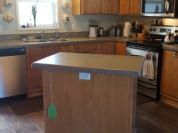 Nice 2007 Kalster manuf. Home on flat, usable, 2.02 acres. Approx 5 miles from town yet has a quiet country feel. Beautiful 360 degree territorial views. 3 Bdrm, 2 bath, spacious kitchen with island & stainless appliances. Includes washer & dryer. Covered front porch, detached 2 car garage, circular driveway, block foundation. Water rights to Evans Creek. Move in ready!