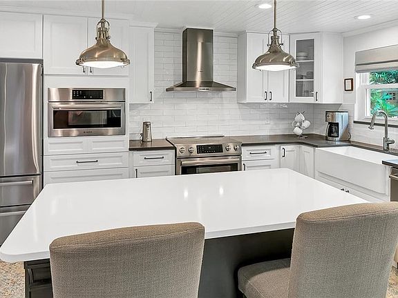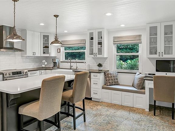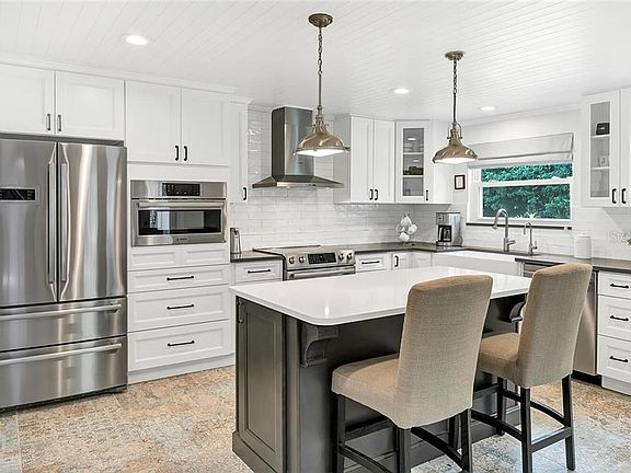 Located on an idyllic tree-lined street, you will find a home where beautiful curb appeal on the outside meets the charm and warmth on the inside. In the popular community of Belleair, this centrally located home will evoke fun-filled thoughts of spacious family living. Step through the front door and enjoy a large and open floor plan that is perfect for entertaining both family and friends. The kitchen has been thoughtfully remodeled with beautiful quartz countertops, stainless steel appliances and handsome custom cabinetry. All four bedrooms are generously proportioned and for privacy are set in a split bedroom layout. Additional interior details include a wood burning fireplace and rich wood flooring. Transition outside to a huge screen-enclosed heated pool with plenty of room for outdoor dining and casual entertaining. Belleair is not only a great place to raise a family, but it's centrally located just minutes from the sugary sands of the Gulf Coast beaches, wonderful shopping and fine dining.