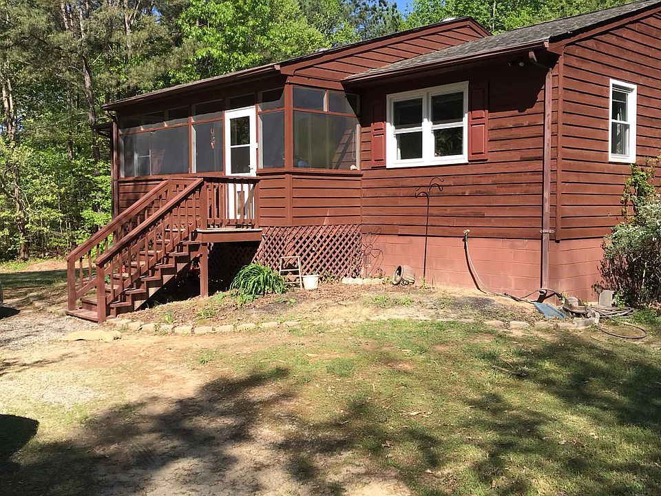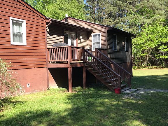 A four bedroom, two 1/2 baths cedar and vinyl sided rancher located on 5.2 acres of land just outside of Blackstone.