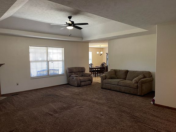 This charming all-brick home in the sought-after Burlington Heights Subdivision offers an inviting layout with three spacious bedrooms and two well-appointed bathrooms. The large living room features a cozy fireplace, creating a warm and welcoming atmosphere for family gatherings and relaxation. The open kitchen and dining area include a central kitchen island, stunning wood cabinets with black crown molding, and sleek granite countertops that combine style and functionality. Complete with a stove, refrigerator, dishwasher, and microhood, makes meal prep a breeze.The home features durable tile flooring in the kitchen, laundry, spare bathroom, and master bath. The spacious master bedroom offers a peaceful retreat, with an ensuite bath that boasts a double sink vanity, a relaxing jetted bathtub, and a step-in shower for a spa-like experience. Additionally, the large walk-in master closet provides ample storage space.Step outside to the covered back porch, perfect for enjoying the outdoors, and take advantage of the two-car garage for parking and storage. The property is ideally located with easy access to Bolivar's shopping district and a quick commute to Springfield via 13 Highway. This is a GREAT price for an all-brick home! This property offers incredible value in a fantastic neighborhood.