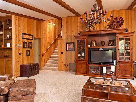 Great views from this 2567 square foot home in the pines of Haisley Homestead. Beautiful, authentic wood peg floors and sections of original wood walls create a Cozy Rustic ambiance. The main entry to the home is the bedroom level. The master suite has a newly remodeled bathroom with a double-head walk-in shower and in-floor heating. This floor is rounded out with 2 additional bedrooms and a full bath. Down a half-flight of stairs is the main level with the great room featuring a beamed vaulted ceiling and brick wood-burning fireplace, the spacious kitchen with breakfast nook and dining room or sitting room, laundry, hobby room and tons of storage. The lower level features a family room with bonus space for an office, half bath, workshop and 2-car garage.