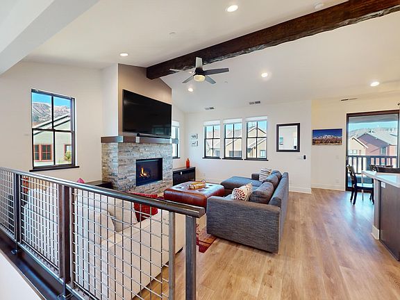Located in Snowcreek Resort's newest phase, CreekHouse, this spacious 1901 square feet townhouse is an end-unit with an abundance of windows for picturesque mountain views of the Sherwin Mountain range and Mammoth Mountain. It features three bedrooms, 3.5 baths, attached two car garage, luxury flooring in every room, laundry room with storage cabinets, rustic modern interior, stainless steel appliance, covered balcony, custom made metal/wood railing, and modern conveniences such as car charging outlet, on demand water heater and LED lighting. And one of the few townhomes in Mammoth that has air conditioning! Sold furnished which includes 75” smart TV with Dolby Atmos sound, well stocked kitchen, the king and queen beds are outfitted with Leesa Hybrid mattresses, and there is a queen sofa sleeper in the living room. Each bedroom downstairs is an en suite with 55-inch Smart QLED TVs and one of the bedrooms has a full over full bunk bed. This townhome is located next to overflow parking and a short distance to Snowcreek Athletic club and the Town’s transit system. Nightly rentals are allowed and this unit has proven rental history.