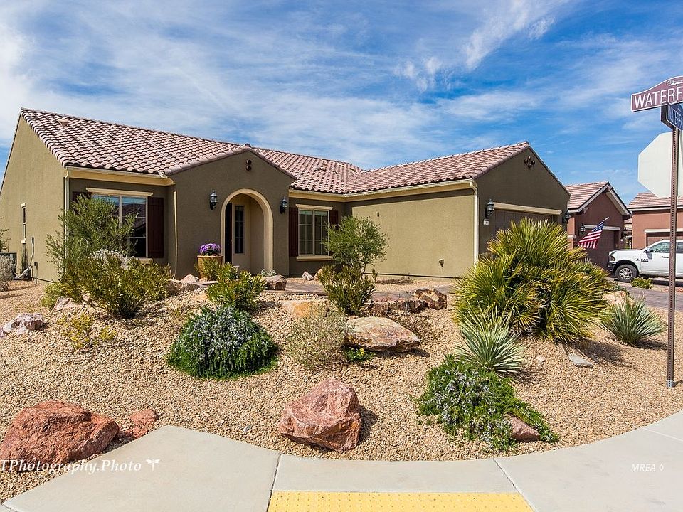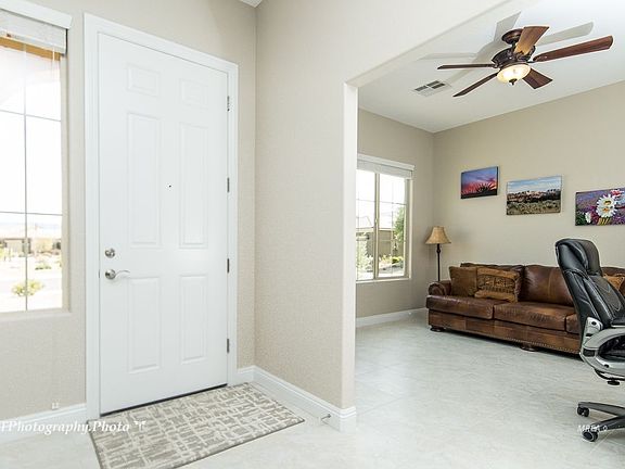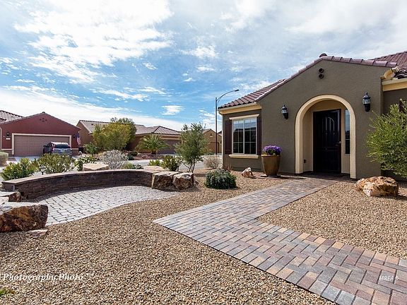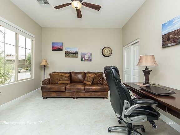 Exceptional upgraded Marigold model with 2+ bedrooms, 2 baths plus den/office needs door to be 3bed. Beautiful 20x20 Porcelain tiles throughout the home with 4 solar tubes for additional natural light, gourmet kitchen package with Cherry wood cabinets, pull-out drawers, soft close, double ovens, Venetian Gold granite kitchen counter tops, tray ceilings, water softener, Reverse Osmosis with new filters, white cabinets and sink in laundry room, 4 ceiling fans, recently painted interior with 2 tone paint. You will love the spacious feeling of this immaculate home. On the exterior of this corner home there is a 23 ft. driveway with pavers, 4 foot garage extension with keyless entry with insulated garage and door, front patio sitting area, full house rain gutters, solar screens for all windows, holiday light package and large garbage can enclosure. Relax or entertain in the tranquil large back patio area upgraded with pavers, awning and fenced with privacy mesh. Come see for yourself take advantage of this incredible value. Sun City residents enjoy many amenities at the 30,000 sq. ft. Recreation Center with indoor and outdoor pools, tennis, pickle ball, bocce ball and so much more.
