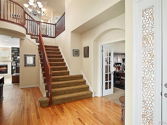 Remarkable and sustainable 2 story home that provides renewable energy and cost savings with fully paid Schuco solar panels. Located at desirable Homestead Hills, this home has been proudly cared for by one sole owner. Main floor office located at the front entry is ideal for a work from home office. The updated kitchen with stainless steel appliances, 42" cherry cabinets with crown molding, silestone countertops and breakfast dining area with a bay window is sure to please the home chef. Unwind after a busy day's work in the upper master retreat with a cozy fireplace and 5-piece en-suite updated bathroom. The finished walkout basement boasts a custom tiled bar with beer tap and kegerator, ample entertaining area, built in Bose speakers, and full bathroom. Superior landscaping with beautiful established trees, varied xeriscape, stone front walkway, area-collected rock displays, and inviting backyard with trex deck with built-in seating makes for great entertaining. Don't miss out on this captivating home. Tour this home today!