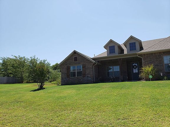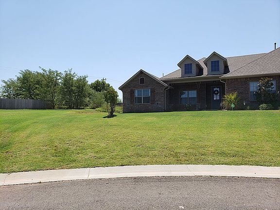 Five bedrooms; three bathrooms; Flex room that can be used as a theater, playroom or home office; Crown molding; Framed windows & front door; Formal entryway; 3 storage closets in west hallway; Kitchen has a walk-in pantry, gas cook top, double ovens, farm sink, dishwasher, microwave, garbage disposal and a breakfast bar; Breakfast nook/dining area opens up to living area with a corner fireplace; Master suite on west side of house has an en suite bathroom with a corner tub, split vanities, private toilet room, linen closet, and large walk in shower & closet. Laundry room/mud room on west side of house. 4 bedrooms, linen closet and 2 full baths located on east side of house. Well, Aerobic septic system, Water softener, Sprinkler system, and Security system. Covered north facing front porch and south facing back patio. 3 car garage, large 30 x 30 shop and extra concrete added for parking on west side of house. Partially fenced back yard. 3/4 acre on cul de sac lot.