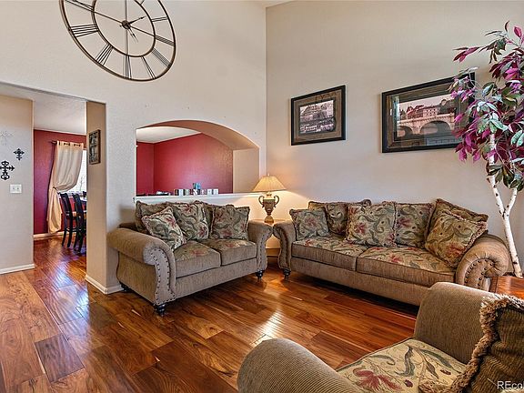 Hurry to see this incredible two story Cherrywood Park home that is loaded with fine features and quality upgrades. There is so much to see and enjoy in this beautifully appointed home that is perfectly located on an over-sized lot with expansive stamped, colored concrete patio. The inviting classic elevation is timeless and welcomes you home to the open and spacious floor plan. The gourmet kitchen offers a compliment of expanded cabinet and counter space, upgraded stainless steel appliances and extended wide-plank hardwood floors.The main floor awaits with a beautifully situated family room that is flooded with natural light through the large windows and two story soaring ceilings with a dramatic over-look. The living area is complete with a formal dining and living room, guest bathroom and convenient laundry room. The upper level features a private master suite with a completely remodeled bathroom with a frameless shower enclosure, soaking tub and dual sinks - a must see!!! The upper level is complete with two additional large bedrooms and a full bathroom. The basement has been professionally finished to add a huge recreation room that is perfect for a kids play area, "Man Cave" or theater room with the built-in speaker system. There is a guest bedroom and bathroom and a large storage area. The outdoor living space is extraordinary...no postage stamp lot here...enjoy the over-sized lot with an extended patio area with firepit and plenty of room for summer entertaining. Cherrywood Park is a delicately planned community with miles of walking and bike paths, open space and close to shopping restaurants, I-25, Factory Outlet Stores, and so much more. This spectacular home has something for everyone and won't last long...see it today!!!