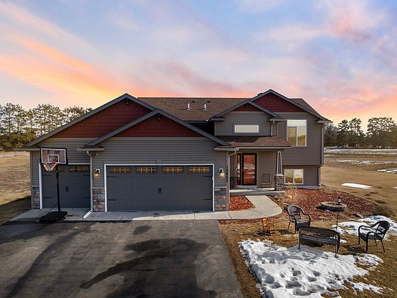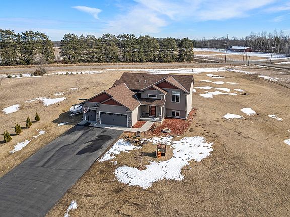 Wow, the newer built, acreage property you have been waiting for! Modern split entry with amazing floorplan set on idyllic 3+ acre cul-de-sac lot where the possibilities are endless! Long driveway lead to gorgeous curb appeal and with mixes of maintenance free stone, vinyl shakes and lap siding plus windows in the 3 stall garage (insulated and with integrated dog kennel). Inside, a spacious entryway leads up to an open kitchen, dining living space that is bright with abundant natural light! Custom cabinetry in kitchen with staggered cabinets, crown moulding and stainless appliances plus large, usable island. Neutral, stylish decor with dark woodwork and enameled doors. 3 bedrooms up including private owner's suite with walk in closet and private full bath (in fact all 3 bathrooms are FULL baths). WALKOUT expansive lower level is versatile and spacious. Move in ready in great location and with an amazing setting! Extremely hard to find and costly to build new on a dream lot like this! Come take a look at this rare opportunity sure not to last!