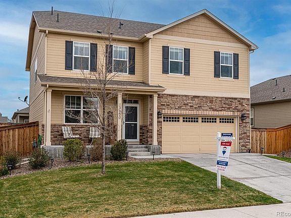 Welcome to this beautiful 2 story home located in the Quebec Highlands community, built by DR Horton. This light and bright open floorplan features new luxury vinyl plank flooring, new interior paint and updated lighting throughout. The large family room includes a cozy fireplace, perfect for chilly nights, and there is also an office for those who work from home. The kitchen is a chef's dream with granite countertops, custom backsplash, a large center island, and stainless steel appliances. It also includes a brand-new fridge and microwave, as well as a huge walk-in pantry for ample storage. Step out the large glass slider to a spacious patio, perfect for summer entertaining. The fenced yard has two trees and professional landscaping. Head down the stairs to an impressive, finished basement with large den boasting a wet bar with butcher block counters. A private 5th private bedroom and 3/4 bath are perfect for guests. The primary bedroom is truly a retreat, with dual closets (one features a large walk-in closet complete with built-ins and a 4-piece ensuite bath, adding to the luxurious feel of the space. Three secondary bedrooms, a full bath, laundry and bonus loft space round out the upper floor. This home is ideally located within walking distance of the neighborhood park and Quebec Highlands hosts many community events throughout the year such as an Easter Egg hunt, family movie night, and food trucks. You'll also enjoy easy access to major roadways, shopping, and dining options. Don't miss your opportunity to own this stunning home in the desirable Quebec Highlands community.