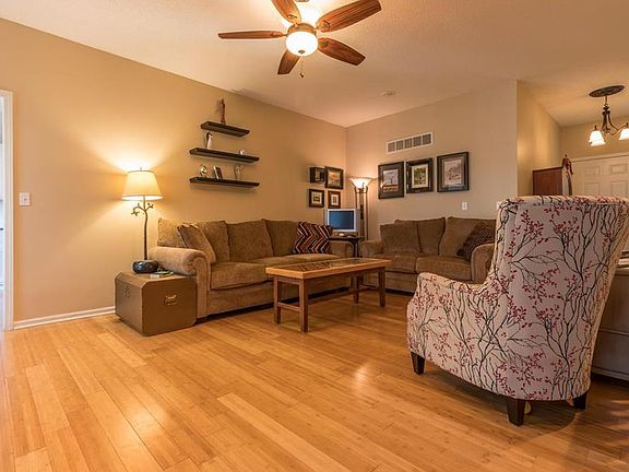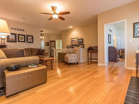 Bright and open reverse 1.5 story! Main floor w/ all hardwood. Updated kitchen w/granite counters and plenty of counter/cabinets. Laundry off kitchen. Master bed with HUGE bathroom, walk-in shower, tile floors, dual vanities. 2nd bedrm & bath on main fl. Finished basement w/rec rm, wet bar, 2 beds & 2 baths. Fenced back patio.