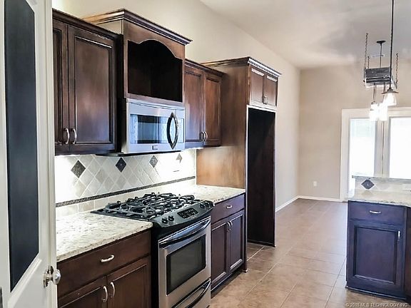 Move-in ready & energy efficient! Backs to greenbelt w/pond.Open & split floor plan with granite/stainless kitchen, gas range, flex room, mud area off garage, & nice large covered patio. Bixby NE Schools.