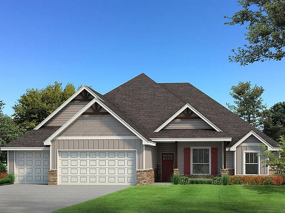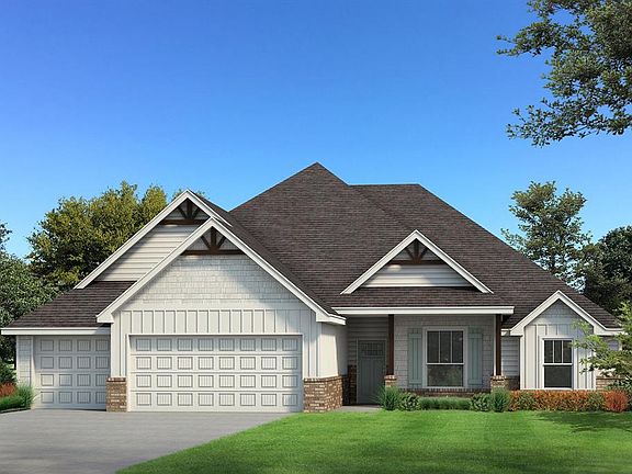OVERSIZED CORNER LOT NEAR AMENITIES IN PRAIRIE MEADOWS! This Cornerstone Bonus Room-5 bedroom floorplan includes 3,230 Sqft of total living space, which includes 2,950 Sqft of indoor living space & 280 Sqft of outdoor living space. Home offers 5 bedrooms, 3 full bathrooms w/ UPGRADED HARDWARE, 2 dining areas, a spacious study, a mudbench, a utility room w/ UPGRADED HARDWARE, & a 3 car garage w/ a storm shelter installed. Living room has a gorgeous coffered ceiling, a gas fireplace w/ our stacked stone surround detail, two 7' windows, wood-look tile, a ceiling fan, & a barndoor. Kitchen features stainless-steel appliances, decorative backsplash, upgraded 3 CM countertops, a large center island, stunning pendant lighting, & quality cabinets to ceiling. Prime suite boasts a sloped ceiling detail, our carpet finish, windows, & a ceiling fan. Prime bath features separate vanities, a walk-in shower, a Jetta whirlpool tub, & a walk-in closet. Outdoor living supports a wood-burning fireplace, a TV hookup & a gas line. Other amenities include a whole home air filtration system, a tankless water heater, R-44 insulation, & more!