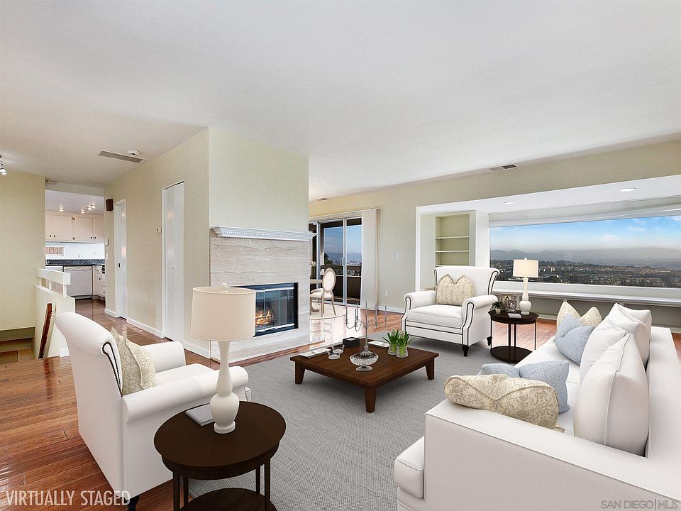 Don't miss the chance for stunning views, large landscaped yard and stylish home in Del Mar Heights! The main level showcases panoramic views from the living and dining areas that flow onto a spacious balcony. The gas fireplace, built-ins and warm hardwood floors add elegance, and the open floor plan and wet bar create the perfect opportunity to entertain. All bedrooms are downstairs, and the master suite features luxurious shower, balcony, fireplace & dedicated office for remote working! One pet allowed.