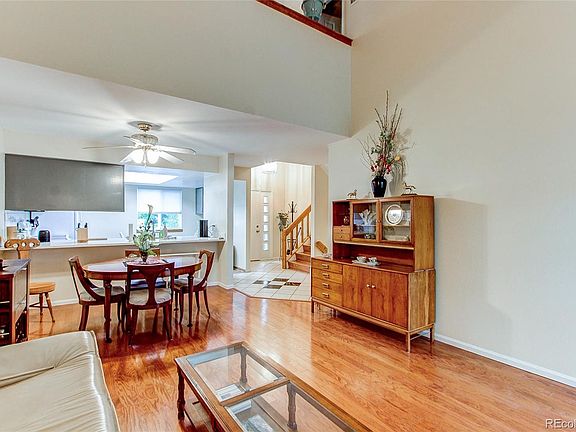 Welcome home! Uniquely updated and move-in ready 2-story townhome in a fabulous golf course community. EZ access to I-225, light rail, restaurants, Costco, shopping centers, and Cherry Creek Parks and bike trails!!! DIA and DTC within 20 minutes. Fresh stylish interior paint, new quartz kitchen tops, all newer mechanical and electrical systems (furnace-AC-HW-wall outlets and circuit breaker box, garage door and opener, etc.), beautiful and EZ to clean wood-like floors throughout-- this 2-bedroom, 2-bath, oversized 1-car attached townhome has a large finished basement for extra living space. A quiet, serene location in the Chimney Hill area of Heather Ridge-- a golf course community in the Cherry Creek School District. Vaulted living room with second level primary bedroom overlook that creates an open and relaxing lifestyle. Primary bedroom has two clothes closets - a large cedar lined closet and well as one in the primary bathroom. That bathroom is updated with two large rectangular vanity sinks and counter. Also updated main level bathroom next to the second bedroom on the main level. That room has many uses -- as a bedroom, a TV room, guest room or study. Some owners have opened up the adjacent living room wall to use it as a formal dining room! Quick possession, so hurry on over to see what you might miss if you wait too long.