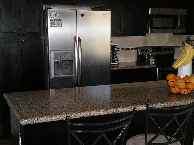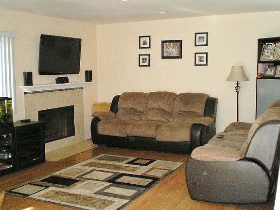 Beautiful newer kitchen, Java Shaker cabinets , Santa Venetian granite counters, travertine backsplash, less than a year old. Stainless appliances. All baths have the same great cabinet-counter combination(second sink added to the master bath). Dual pane windows all around, huge master bedroom, mirrored wardroom doors ,the largest plan in complex. Living room has recessed lighting, travertine fireplace. It has surround sound as does the master bedroom. Plant in your private gated yard. Water incl. in HOA. So many upgrades in the great home in an excellent family complex. Huge pool and a large play area for the kids. Ceiling fans throughout. Water heater, garage door opener, rain gutters, and toilets are newer. Low maintenance backyard includes concrete flooring, drought tolerant plants, artificial turf and kid's sand box. Sandbox has a landscape fabric bottom and can easily be converted to a garden. HOA fee includes water to unit. The Poway School District is excellent. Children from this home would attend Midland Elementary, Twin Peaks Middle, and Poway High. There is a park a short distance from the entrance of Country View and you can walk to shopping and the movies.