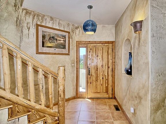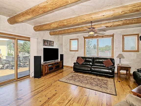 Executive Southwest style home situated on 5+ gorgeous acres. Pride of ownership shows in the property, it has been immaculately maintained. Kitchen has a 4-seat large bar, granite counter tops with tons of storage and working area. The generous floor plan offers a game room w/pool table and a bonus room with its own exterior entrance. Master has two private decks, two walk-in closets, and a spacious 5-piece bathroom with a soaker tub. The custom interior paint in this home is warm and inviting. Outside you will find a pool, a hot tub with more than enough room for entertaining and soaking up the warm Colorado sun. A 30x60 detached shop and 36x36 barn round out the property. The shop offers an exercise room, storage loft, and a 14 ft overhead door. In the barn you will find custom woodwork, 4 12x12 stalls, wash rack, and tack room. Outside of the barn there are 3 spacious corrals. The