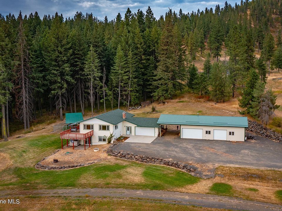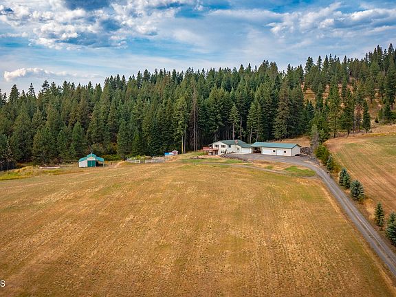 Private and cozy setting on 20.83 acres overlooking the Minaloosa Valley in Plummer. Purchase includes large beautiful home on 1 acre parcel and attached 19.83 acres. Approx 11 acres is income producing Timothy Hay which provides beneficial AG exemption. Property has private driveway, seasonal creek, large shop with lean-to, barn with lean-to for animals, riding arena converted to fenced garden, fenced dog run and more. Property borders lumber company 290 acres. Comfortable wood burning stove on main level and pellet stove in basement heat entire home even though it has an HVAC system and baseboard heating. Attached breezeway to shop is large enough to park a vehicle. Large shop has concrete interior floor, 220 outlets and large lean-to. Barn has 2 horse stalls and a lean-to to cover your equipment. Sellers were in process of updating kitchen and basement floor but work has ceased. Property sold ''As is''. New kitchen sink and faucet included in sale.
