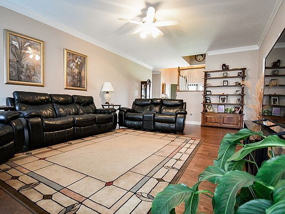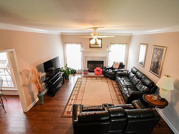 All brick, 3/bd 2.5/ba + office w/closet.is sitting on an acre. Newer Roof, & HVAC's. Primary Suite down with huge walk in closet. Hardwood floors down. Kitchen with new SS appliances, granite counters and tile backsplash. Formal Dining room. crown Molding throughout. Composite deck out back 3 car attached garage + 2 car detached garage.
