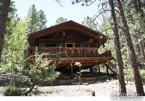 The perfect getaway! Tucked away in the woods off the Peak to Peak Hwy, this classic cabin sits on 19+ beautiful acres- a quick commute out of the city & into the fresh, cool mountain air. Enjoy the peace & quiet from your covered porch or explore the many nearby trails. This cabin offers a water catch system, some plumbing & on-demand hot water but is a work in progress & needs finishing touches. Wired & ready for solar or a generator. Propane Appliances. Antique cook stove included. Cash Only!