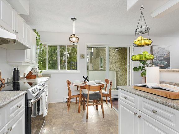 This bright, south facing, and spacious 2-bedroom, 1-bath home offers a warm, inviting atmosphere with abundant natural light. Overlooking the beautifully maintained courtyard with birch trees and a wisteria walkway, it feels like a peaceful retreat in the city. Inside, enjoy hardwood floors, a tastefully renovated modern bathroom, and updated kitchen appliances. The open-concept living and dining areas create a versatile, cozy space ideal for relaxing or entertaining. Both bedrooms are generously sized with ample closet storage. Step onto the oversized balcony off the living room to enjoy your morning coffee. The building features a sunny southwest-facing common rooftop deck with BBQ, plus recent upgrades including new windows and sliding doors, fire alarm system, call box, and garage door with opener. Pet-friendly with parking, storage locker, bike storage, excellent transit access, and a central location near Hillside Centre, Downtown, UVic, and Camosun.