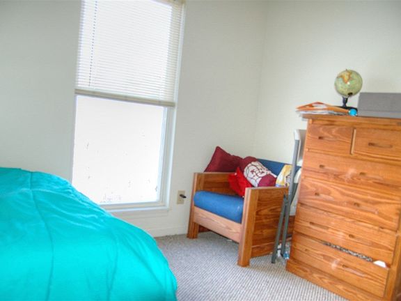 Quiet third floor corner condominium with a view toward the JMU campus. Newer building (2003) than the others in Hunters Ridge. Very convenient parking is available for this building. Sprinkler system. New carpet and kitchen flooring in 2012. Each bedroom has its own full bath. Most all of the furniture is included. Television is included. Market rent is estimated between $750 and $850 per month. No management agreement is in effect.
