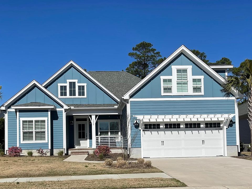 One of a kind Act Now! Modern, New (2 years old) open air OIB Beach House with soft blue and white colors - 1 mile from the sandy Ocean Isle beach. Fully furnished including wine cabinet. 3 Bedrooms on 1st floor, large Bonus with Full Bath & bed upstairs, WALK-IN STORAGE, 8-Foot Glass Sliding Doors lead to Spacious Screened Porch & Patio with Private backyard, and OVERSIZED 2-CAR Garage. LANDSCAPING MAINTENANCE INCLUDED. Tasteful upgrades you will love including Coffered and Tray ceilings, LVP floors, Custom Trim throughout, large tiled baths, Glass Frameless shower enclosure in primary bath, undercabinet lighting in kitchen, ceiling fans, Lever door handles, 5-Inch Plantation Shutters throughout & brushed nickel light fixtures. Enjoy movies or your favorite shows on contemporary 8- person sectional sofa with big -screen TV. You will love cooking with Frigidaire Gallery appliances in open kitchen area. Nothing better than morning or evening walks along Palm Tree lined streets in this golf cart friendly community - so great that the last two renters bought here! Neat local coffee shop and large grocery store (Lowes) as well as local restaurants nearby, make life easy and convenient. The beautiful, sandy beach is less than a mile away. Terrific Pickleball Courts and New Tennis Courts less than 4 miles away! The Retreat community includes pool, Cabana with grills, and shuffleboard. Active HOA maintains landscaping & keeps everything looking great which frees more time to enjoy this beautiful area! For details, please see to photos! Renter is responsible for all utilities except WIFI which the landlord will pay. No smoking allowed. Owner is licensed real estate broker. Small pets accepted.