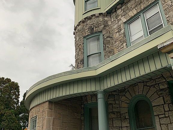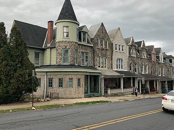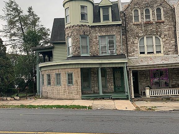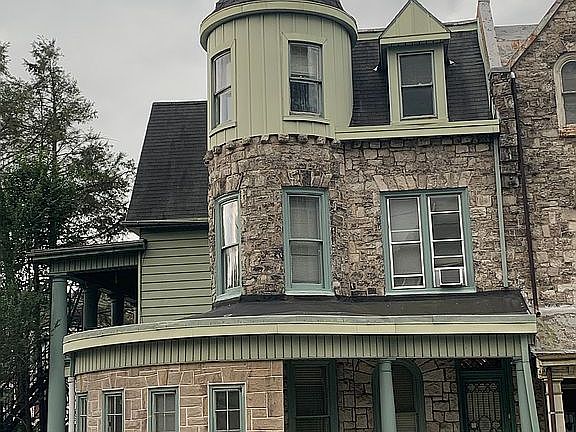 ATTENTION: Homebuyers/Investors: 3 UNIT This is the IDEAL owner-occupied 3 unit apartment building! Or rent all three. Presently unit 1 rented $1050/mo, unit 2 rented $950/mo Unit 3 open The attractive home is a large stone structure with a spire on a triangular corner yard which is fenced and hedged. It is a prominent property at the end of a long row of stone houses. The pagoda can be seen from inside and out. The front faces Mineral Spring Road and the side with a one car garage on basement level is on Spruce Street. There are four separate porches; one on the front, two on the side (1st and 2nd floors), and a small deck on the back. Features three private entrances for the large first floor unit; one from the private fenced side yard, one from the fenced back yard off Spruce Street and one through the garage/basement entrance also off Spruce Street. Garage parking and basement access with laundry hookup makes it ideal for owner occupied buyers. A modern oil hot air heating system and electric hot water heater are common to all units as is the city water meter. Each unit has its own separate electric service and metering. The second and third units are reached through an attractive leaded glass door from the front porch. A fire escape egress is also accessible by both units. UNIT # 1 The first floor features beautiful wood floors in the living room, dining room and bedroom. The living room has a carved mantle and built in book shelves which gives a very nice warm feel. The dining room is similar with warm wood floors and an entrance to the basement. A wrap around side room is large, floored in vinyl and can be put to many uses including as a second bedroom. The entry hallway and closet are separated from this room by a double French door. The bathroom is Art Deco and although dated remains attractive with a stall shower and classic vanity. Likewise, the kitchen which is in the back of the house features many white cabinets, electric range and vent, adequate countertops and enough room to serve as an eat-in kitchen. A door exits the kitchen onto a small deck which invites expansion. The bedroom is also warm with wood floors and a large closet. The side porch and yard complete this unit as a large living space with tons of privacy. UNIT #2 The second floor unit features a large carpeted living room with good lighting and ample space. A ceiling fan, curved walls, interesting wall finishes and a closet complete this room. The kitchen is an eat-in kitchen with a pantry, adequate cabinets, dated decor but functional and attractive. The bathroom features classic old white tile work, a shower bathtub and a large vanity. The back bedroom is huge and could be divided into two as there are two separate doors for entry. It is carpeted and features a doorway entry onto a beautiful second floor porch. The fire escape is accessible from this porch. UNIT #3 The third floor is also large. An eat in kitchen with adequate cabinets and countertops. A pantry and a beautiful view of the park-like properties across the road add to this kitchens highlights. The living room in the back of the house has a wood floor and built in bench seating with storage. A beautiful view of Neversink mountain is enjoyed from the back. The egress to the fire escape and a huge closet round out this room’s features. The bedroom is in the front and is carpeted and attractive.