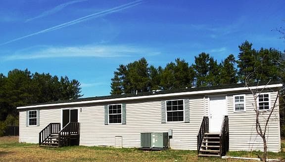 Spacious manufactured home on 4 acres! Home features 3 bedrooms and 2 full bathrooms. Master bedroom has a large walk-in closet and the master bath has double vanity sinks, garden tub, and separate shower. Split floor plan allows the additional 2 bedrooms on the opposite end of the home. An addition was added to the home which gives more space to enjoy the environment. Call to set up your appointment today! Home is sold ''AS IS''