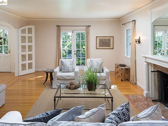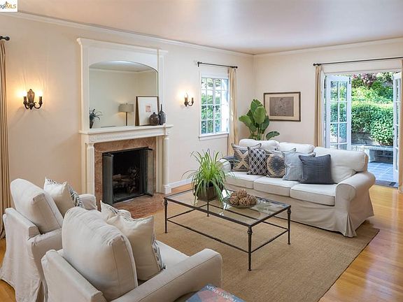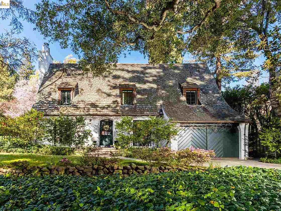 This absolutely beautiful property captures the imagination, delighting all who pass by, or enter. Designed by architect Fred Reimers as a "Honeymoon Cottage" for the original owners in 1928, this Cotswold-style Cottage retains its original details and charm, though it has been expanded and modernized. Nestled amongst the trees, on a magnificent lot, the home is framed by giant oak and sequoia trees, surrounded by flowers and vines, with secret gardens, meandering paths and sunny clearings. The charming colors, dormers, and the whimsical park-like grounds give the impression of a cottage in the woods. The interior features gleaming hardwood floors throughout, generous sized rooms, coved ceilings and light streaming through the french doors and windows. Indoor-outdoor living at its grandest, with french doors from the living room, and kitchen family room, open the house to nature. The kitchen and family room were added more recently, and flow gracefully to the rear patio and garden. Up the elegant staircase are the master bedroom with ensuite bathroom, and 2 more spacious bedrooms, connected by a 'Jack-and-Jill' bathroom. Attached garage, built-in window seats, extra storage, shelving, caches, and ample closets add to the practicality of modern living. FEATURES INCLUDE -Over a quarter acre lot of beautiful gardens, mature trees, flowers, clearings, patios and paths -Hardwood floors throughout -Spacious Elegant Living Room with french doors to front and back gardens -Modern Kitchen and Family Room addition open to patio and rear yard -Fireplaces in Living and Family Rooms -Formal Dining Room with built-in console -Graceful, charming architectural details throughout -3 bedrooms, including Master with en-suite bathroom -Jack-and-Jill bathroom, and downstairs Powder Room -Attached garage with sliding doors and long driveway -Close to San Francisco Transbay Bus Stop