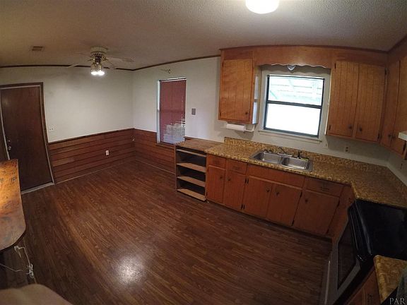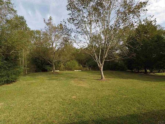 Great home on Large lot in Cantonment. Close to town yet enough room for privacy. This home is solid with a metal roof Cedar siding and brick around the bottom. The house has a large living room and surprisingly LARGE Eat-in-Kitchen. You'll swear the home is larger then the square footage listed. The rooms are all great sizes and the master bedroom has a huge walk in closet then a half master bathroom. The backyard is the icing on the cake for sure. The back covered porch is 26x12 and over looks almost an acre of yard. Chain link fencing around the immediate back yard and the rear wooded area of the back yard has older field fencing around it. The wooded area was pasture just a few years ago so it could stay wooded or be converted to more open space easily.Priced to sale quickly call today for your private showing.