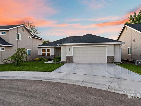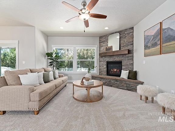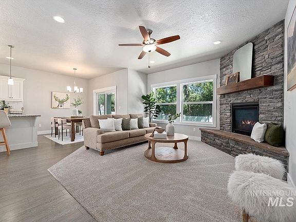 Nestled in an incredible, quiet area, yet close to everything, this beautiful home built by Stetson Homes is ready for you! The modern open-concept design welcomes you with a spacious kitchen featuring a large center island, perfect for entertaining or daily living. With granite counters, sleek white cabinets, and stainless appliances, the kitchen combines practicality with elegance. The airy living space, complete with new carpet & a cozy fireplace, sets the stage for warm gatherings with family and friends. Step outside to the patio-style backyard, ideal for outdoor relaxation without extensive yard maintenance. With 3 beds + office, the versatile space accommodates various needs, whether it's a home office, gym, music room or playroom. Seize your chance to make this exceptional property your own and experience the best of Meridian living! Back neighbors already have a tree-trimmer scheduled in August to cut back the trees hanging over the fence.