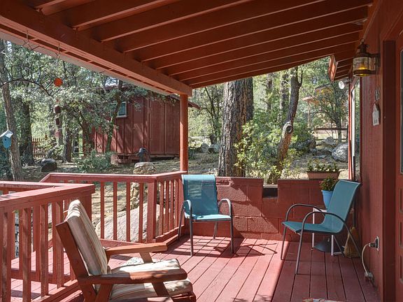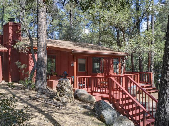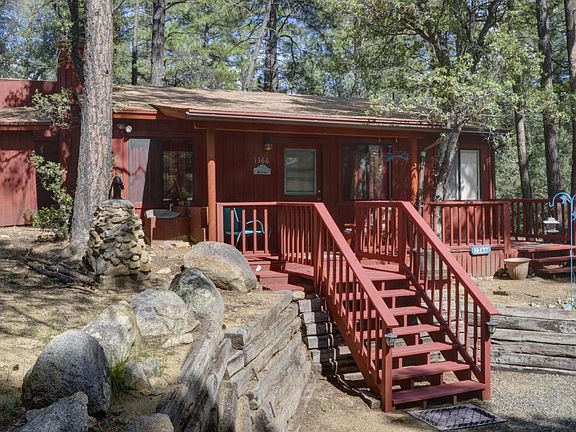 Adorable little turn-key cabin in desirable Ponderosa Park! This cabin is perfect for full or part time living. It is being sold furnished, so just bring the family and fill the refrigerator and don't miss out on the end of summer in the Pines! Small cabin has tall ceilings and tile floors. Combo kitchen, dining and living area is bright and open. Home is complete with new heating and cooling system. Cabin has two bedrooms and one upgraded bathroom. One of the bedrooms has a massive loft that has been used as a sleeping area for grandbabies and children in the past. The loft is at least 12x8 with lights. Both bedrooms have ceiling fans. This cabin is situated on a lovely Ponder Park lot.Access to the cabin is fully paved and there are two parking areas, which is rare for the ''Park''.