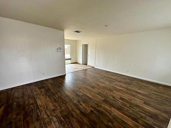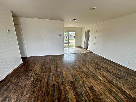 Perfect starter home for a first time home buyer or investment property. This 3 bedroom 1 bath home also has a partially converted garage for a 4th bedroom or additional living space. Fresh Paint inside and out. Upgraded dual pane windows, laminate flooring. Tiled kitchen and dining area. Bathroom has been fully remodeled and ready for your finishing touches. Extra large backyard perfect for kids to play.