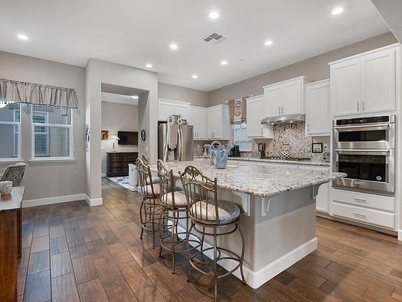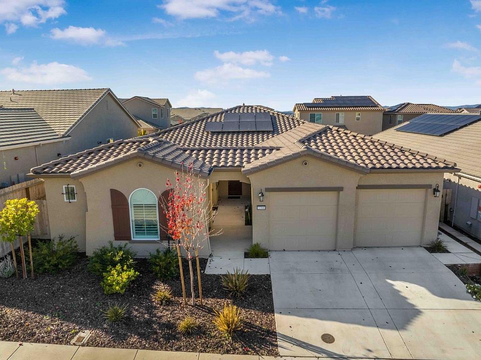ELEGANT Santana Ranch single-story beauty boasts 2,365 sf of gorgeous living with 4 bedrooms & 3.5 bathrooms on a large lot w/attached In-Law/Guest unit w/ separate entrance. BRAND NEW backyard, just added! OWNED SOLAR! Built in 2022 & NO HOA! Deliciously UPGRADED to the tune of about $50,000 with a long list of amenities and details including custom Granite/Edging and white cabinetry in the kitchen, LG refrigerator, high-end stainless steel appliances and brushed nickel handles/hardware through-out, Smart Home features, whole house fan, Tesla EV charger in the Tandem 3 car garage, large soaker tub in the primary suite and custom window coverings throughout. Beautiful flooring including Wood Grain Luxury Ceramic Tile in high traffic/bathroom/laundry areas and deep, luxurious carpeting in all bedrooms for cozy toes! Enjoy the fireplace in the family room AND the stone surrounded fireplace located on your covered back patio complete with TV hook-ups too! Inside laundry, Samsung washer/dryer, AC, tankless water heater, ceiling fans, plantation shutters and the most serene color palette to be found - this is Legacy Living at its finest! Walking trails, parks, lovely common-area landscaping within walking distance to schools, shopping, dining, golf/tennis/pickleball. Come on in!!