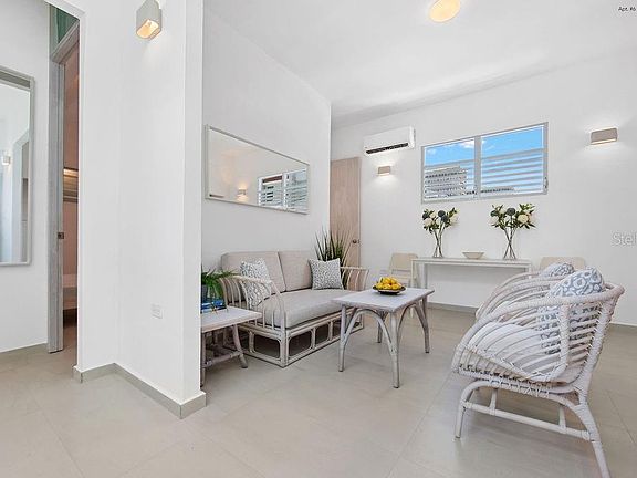 Welcome to Wilson 1366, Apt 6. A beautifully furnished 2-bedroom, 2-bathroom apartment offering 634 sqft. of thoughtfully designed living space. This stylish unit combines comfort and convenience, featuring split-unit air conditioning, contemporary furnishings, and access to an on-site laundry area. Enjoy the benefit of an assigned covered parking space, a transfer switch for easy generator connection, and a water cistern that ensures peace of mind during service interruptions. Situated near Ashford Avenue, this apartment offers convenient access to Condado Beach, La Placita de Santurce, restaurants, supermarkets, and local entertainment. Enjoy urban living in one of San Juan's most dynamic neighborhoods. Utilities not included. Available for immediate move-in.